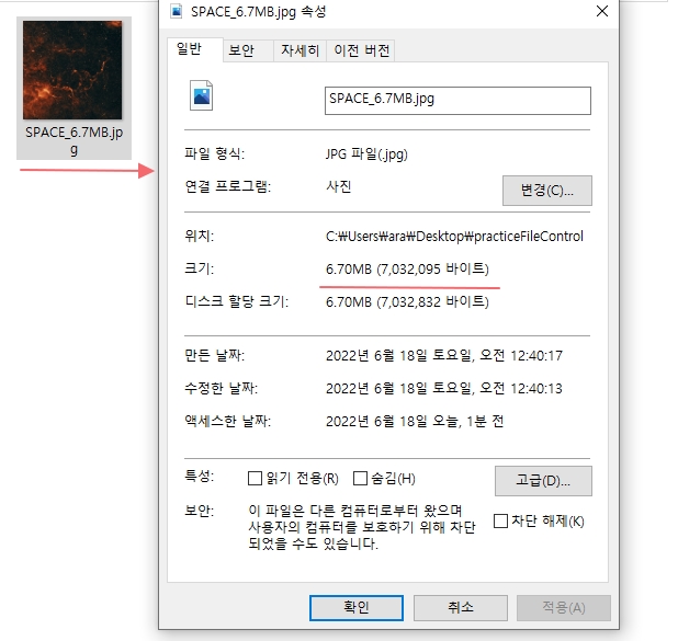 실제 C드라이브 경로에 가면, 지정된 이름, 확장자, 용량의 파일이 생성되어 있는 것을 확인하실 수 있습니다
