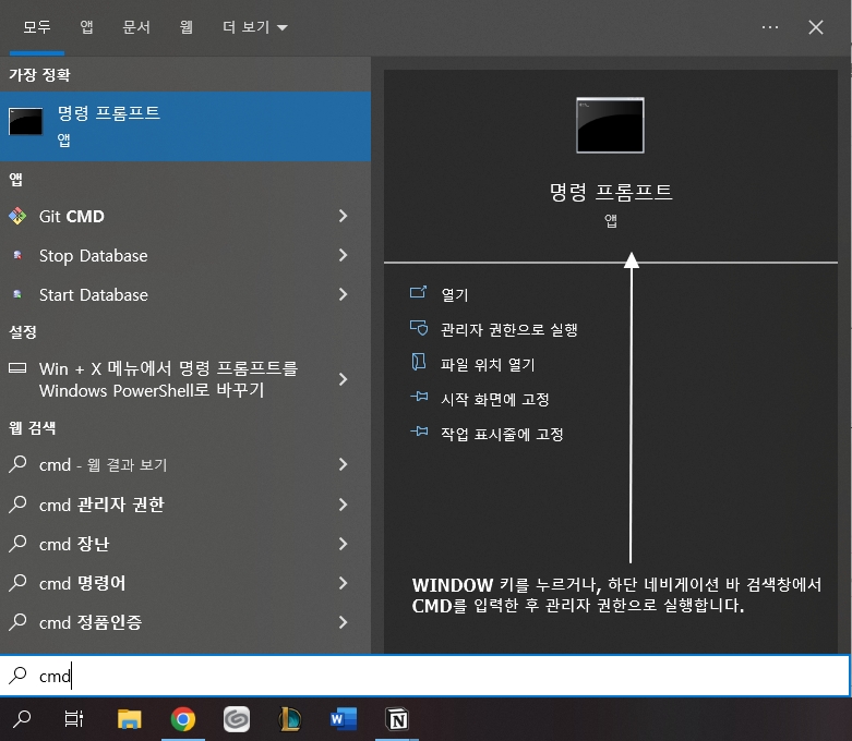 먼저, CMD를 관리자 권한으로 실행합니다.