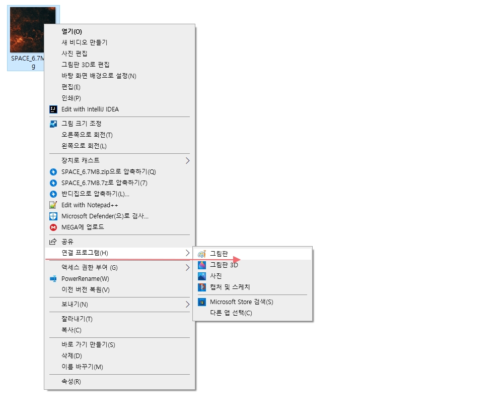 마우스 오른쪽 클릭 후 이미지를 그림판으로 엽니다.