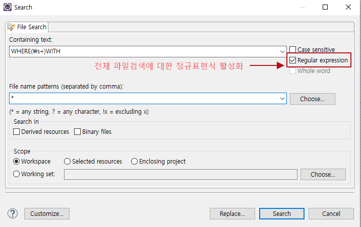 이에 Eclipse나 Intellij 에서는 보다 정밀한 검색기능을 위해서