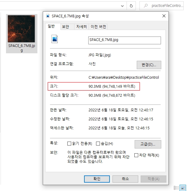 실제 C드라이브 경로에 가면, 지정된 이름, 확장자, 용량의 파일이 생성되어 있는 것을 확인하실 수 있습니다